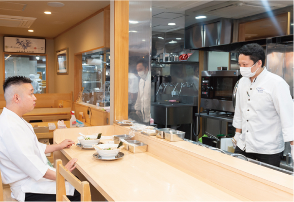 店主を招いての研修会も開催し、飯田店主に一人一人調理工程を見て頂き、